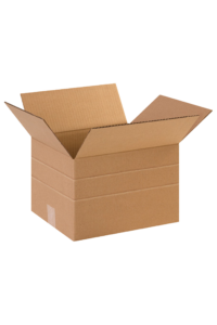 Our 12 x 10 x 8″ corrugated shipping box (or corrugated shipping container) offers the best durability at the best prices. Our corrugated moving boxes are perfect for every move. Corrugated boxes (or corrugated fiberboard) is comprised of a heavy paper medium, which is the wavy fluted inner material, and layers of linerboard glued to either side. The linerboard is the flat outer surface. Both the fluted medium and the linerboard are made of a heavy duty paper called containerboard. The strength of a corrugated box will vary depending on the different combinations of mediums and linerboards.