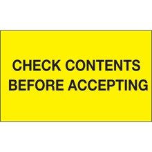 | Name | 3 x 5" - "Check Contents Before Accepting" (Fluorescent Yellow) Labels (500/roll) |