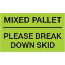 | Name | 3 x 5" - "Mixed Pallet - Please Break Down Skid" (Fluorescent Green) Labels (500/roll) |