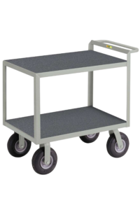 All-welded steel utility cart with cushion load wheels provide a smooth ride over rough or uneven surfaces.